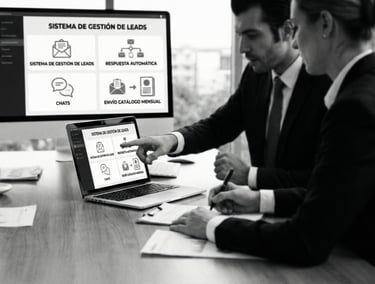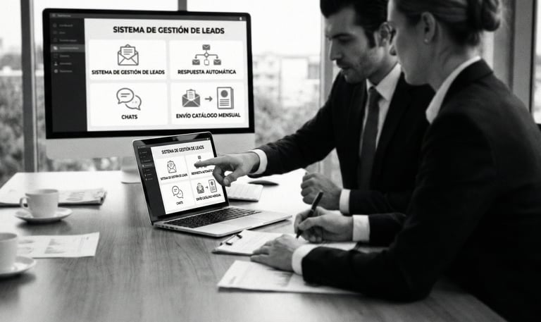 Sistemas que se encargan de las tareas repetitivas de contacto con el cliente. Esto incluye desde enviar mensajes automáticos a personas interesadas (leads) y gestionar chats, hasta mandar catálogos mensuales por correo a tu lista de clientes destacados. ¿Para qué sirve? Para que tu negocio responda al instante y mantenga el interés de los clientes sin que tengas que estar todo el día pegado al celular o escribiendo correos uno por uno.